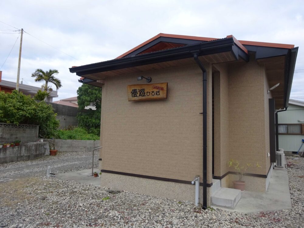 デザインは自ら考え、業者によって彫られた文字に自らが色を塗って仕上げるほど、施設の名前にはこだわった。自分だけではなく、島の人々が「のんびり楽しめる場」にしたいという思いが込められている。それまでは実家で教室を開いていたが、町の中心地から離れたところにあり、街灯がほとんどないため夜になると真っ暗で、生徒さんたちの「怖い」という声も聞いていた。「優遊ひろば」は町の商店街から徒歩10分ほどの位置。生徒さんたちが通いやすくなるだろうとの思いがあった。