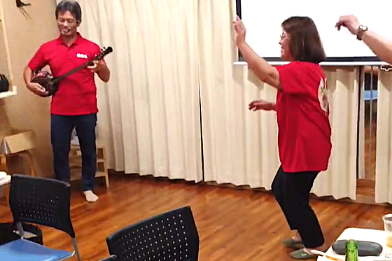 唄って踊れる「優遊ひろば」は琉球舞踊の練習場になったり、同窓会の打ち上げ会場になったりすることも。写真提供:田皆中同窓会辰巳会