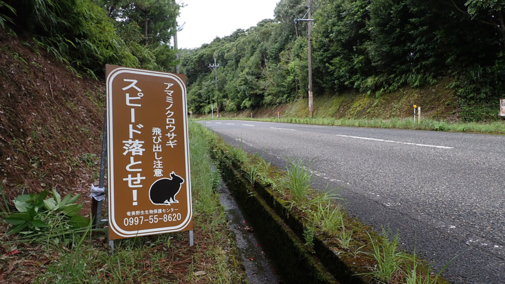 ロードキル防止を呼び掛ける看板(環境省奄美群島国立公園管理事務所提供)