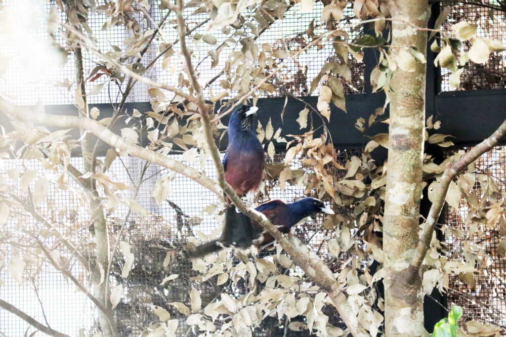 「ひるにわ」にはルリカケスが2羽、「よるにわ」には同じく夜行性でフクロウの仲間のリュウキュウコノハズクも同居しています。ルリカケスは上野動物園で繁殖した個体です。リュウキュウコノハズクは2023年4月、右の翼を骨折したところを保護されました。クロウサギと共にQuruGuruで飼育されています。